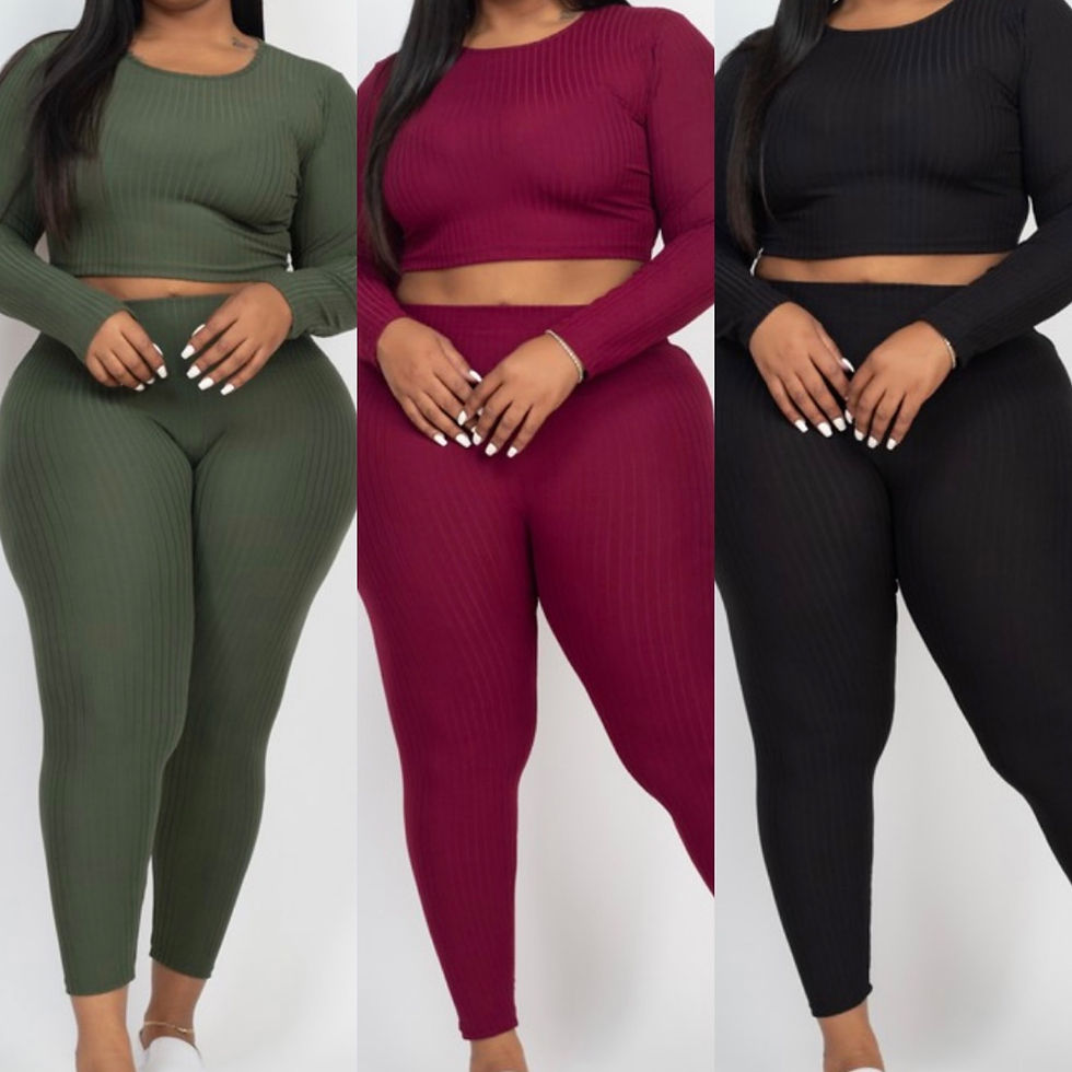 Plus Size Ribbed Crop Top & Leggings Set